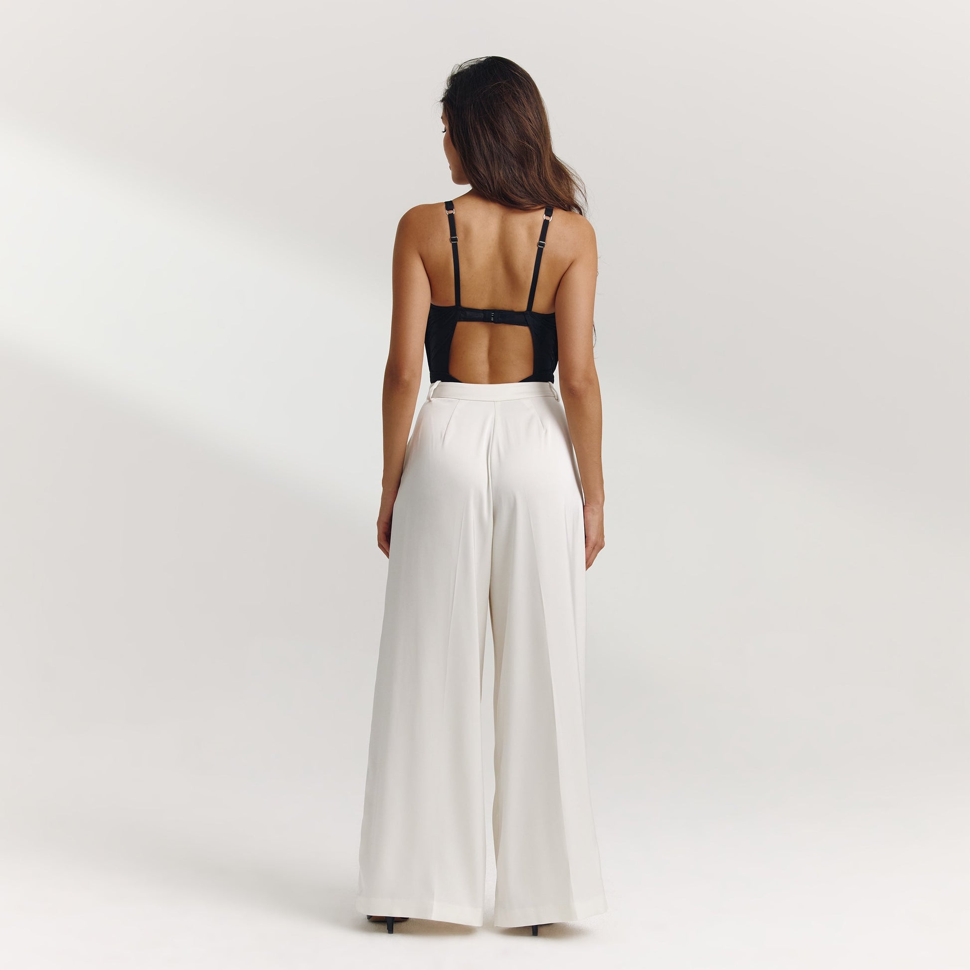 - Pleated, underwired cups with a rigid mesh liner for support